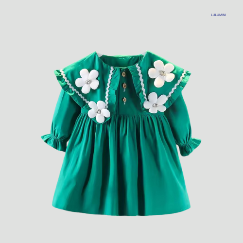 Summery and floral—our Floral Dress in green or white brings cheer to any sunny day. Made of 100% cotton: lightweight, breathable, and super comfortable for playtime, parties, and outdoor adventures.
