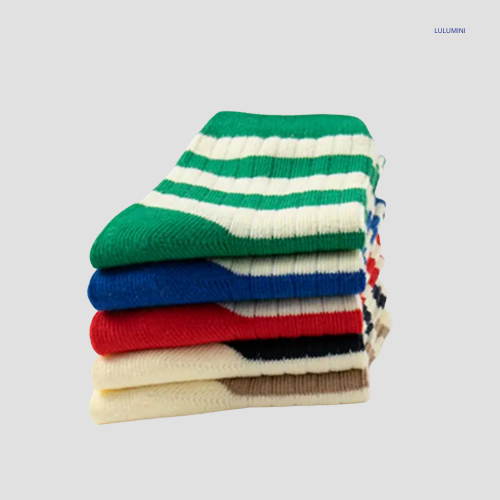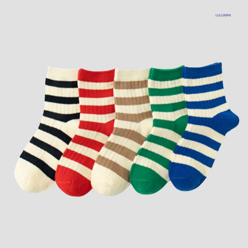 Onze Gestreepte Sokken, gemaakt van 100% katoen, komen in een set van 5 paar. Het comfortabele materiaal en het speelse gestreepte ontwerp maken ze perfect voor dagelijks gebruik.